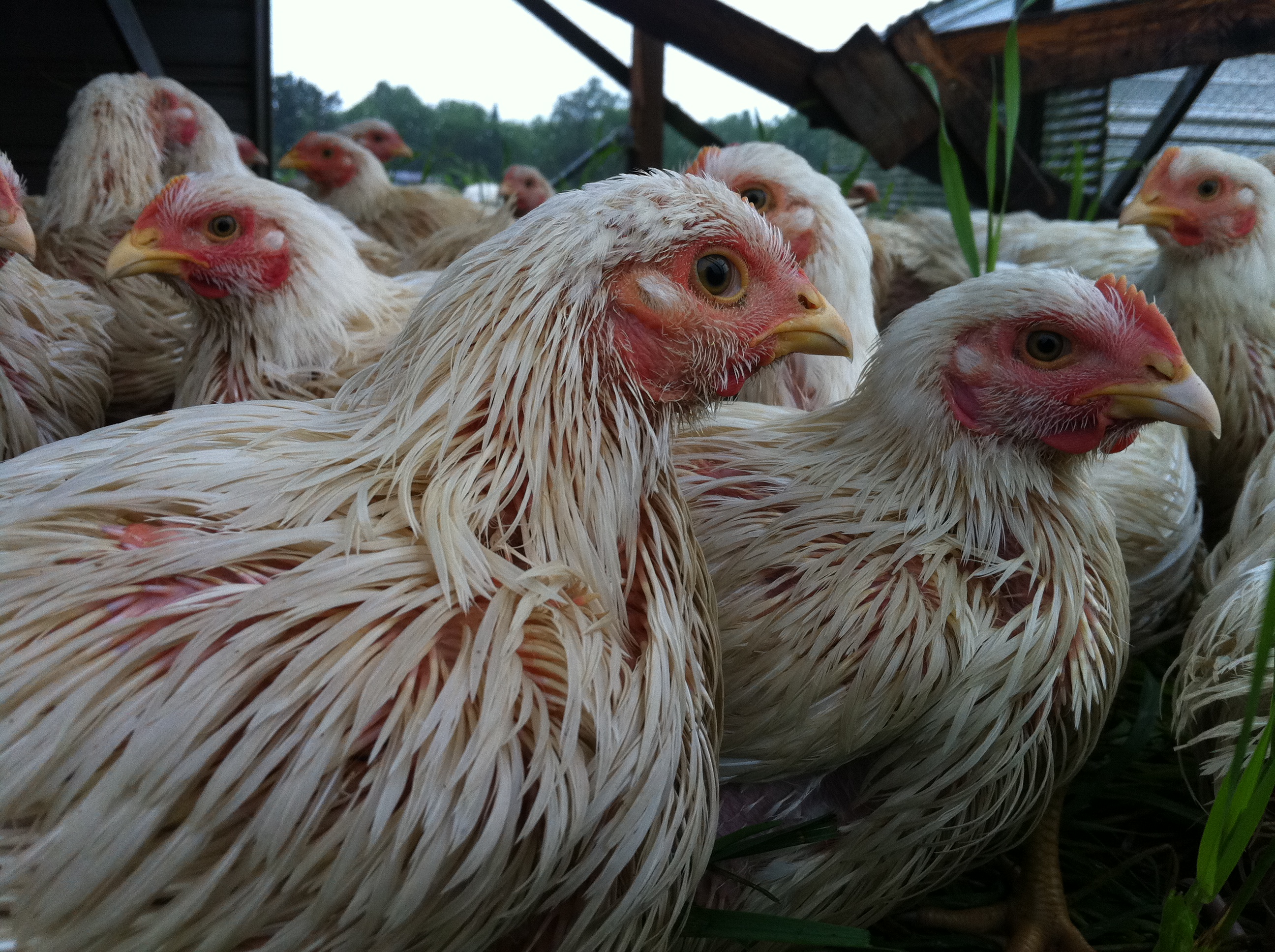 The early potatoes are doing well. Tomatoes both in the high tunnel and outside are looking really good. The onions, leeks, and garlic are vigorous. The chickens are out on pasture and doing well, happy for lots of bugs and green grass. We’re really hoping we don’t get soaked in the next few days because most things are pretty happy!