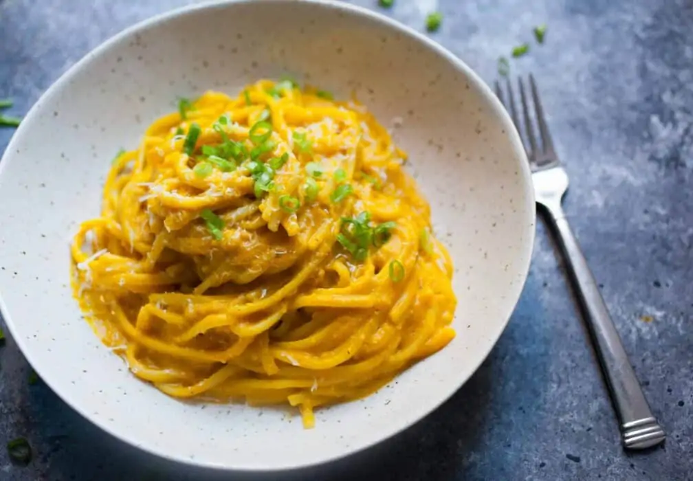 After the holidays when I’ve done a lot of cooking, I want an easy dinner that tastes delicious without all the hard work. This Creamy Squash Pasta is an easy dinner with minimal effort, but tons of flavor. The longest portion of this recipe is roasting the squash in the oven. If you want to make it even faster, you can look up ways to cook the squash in your microwave. This recipe calls for Kabocha squash (Winter Sweet and Tetsukabuto are both types of Kabocha), but your Delicata would be great in this recipe as well. If you use Delicata, I would suggest omitting the brown sugar since it is naturally very sweet.